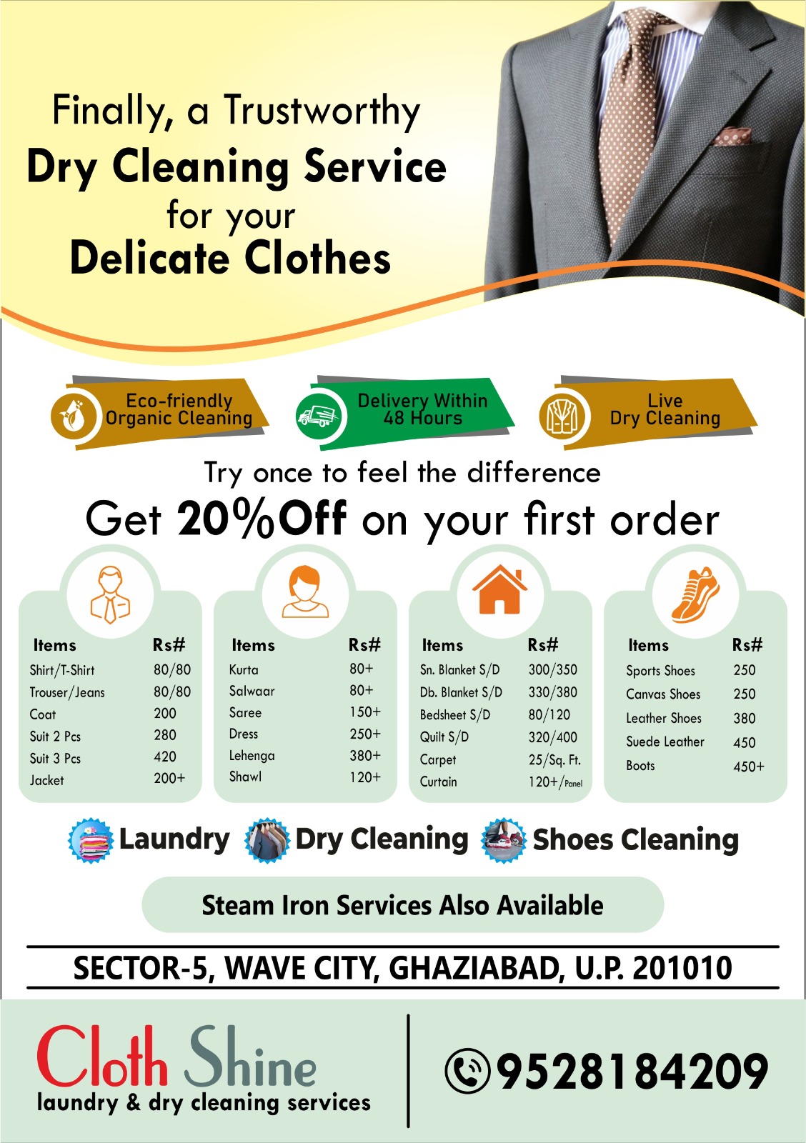Best drycleaning and laundry services around Wave City NH24 and Aditya World City. Quickest service and home delivery.